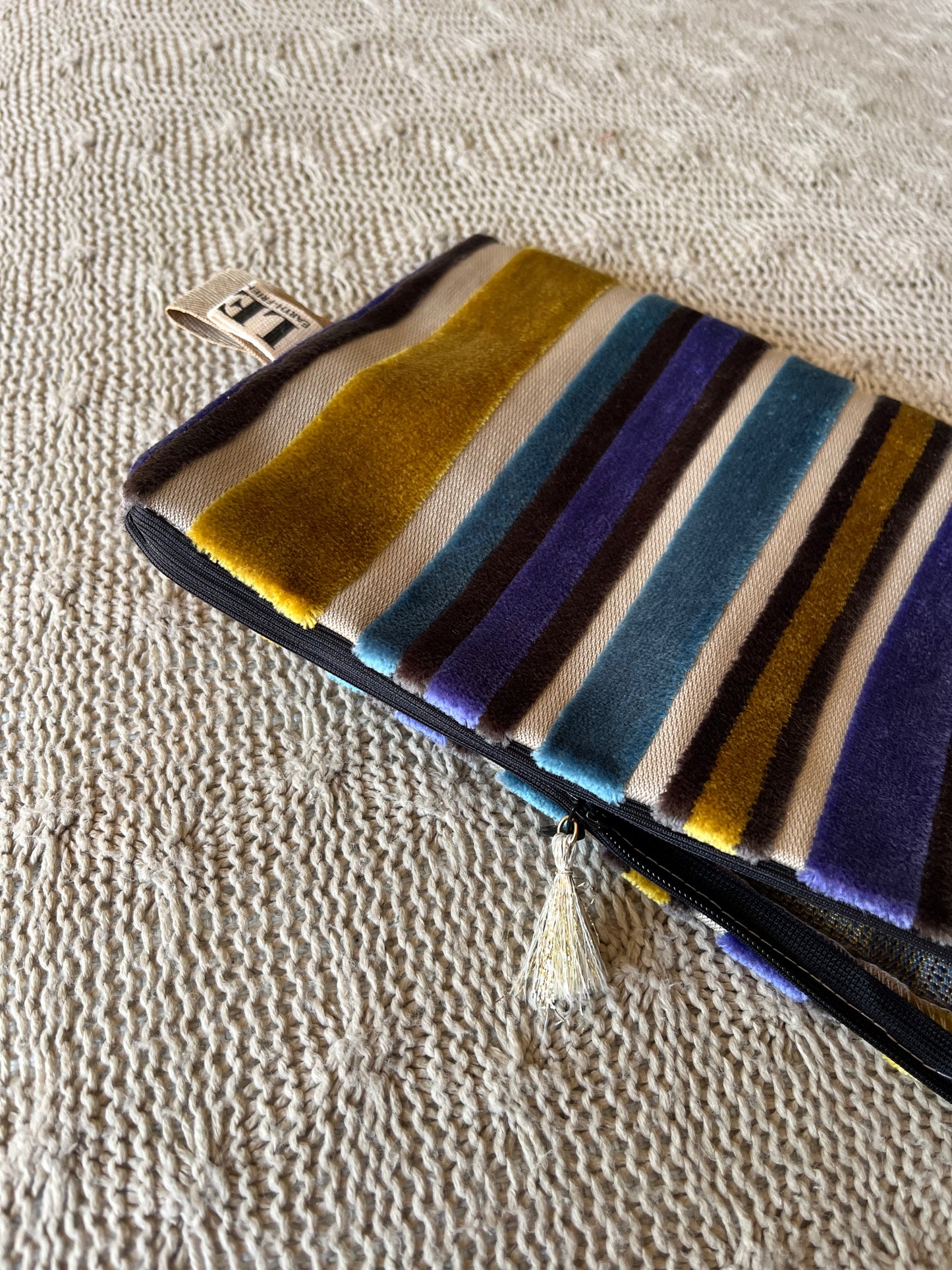 Zip Pouches made from fabric sample books! Super soft, gorgeous jewel colours and fun designs. Zip closure and finger loop. These are big enough to use as clutch bags but also the perfect size for make up bags.